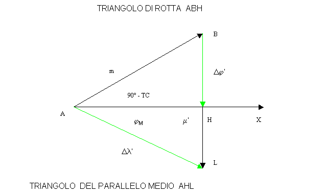 mediante la formula approssimata detta del parallelo medio.